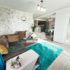 Living open-space amenajat cu marmura si finisaje decorative + acces catre terasa si curte