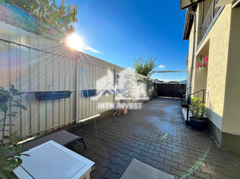 Curte privata: 105 mp, dotata cu structura metalica acoperita cu panouri de Isopan pentru foisor, anexa pentru depozitare cu instalatie electrica. Curtea este pavata + spatii verzi.